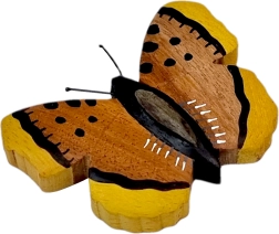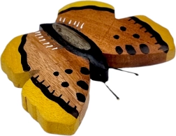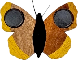 Ręczne wykonanie, naturalne materiały i piękny motyw motyla – ten drewniany magnes ozdobi każdą lodówkę i tablicę magnetyczną. Składa się aż z pięciu rodzajów drewna i jest jedynie ręcznie domalowany, dzięki czemu wyróżniają się jego naturalne barwy, precyzyjne wykończenie oraz oryginalny design. Świetny element dekoracyjny i mały prezent dla miłośników przyrody.