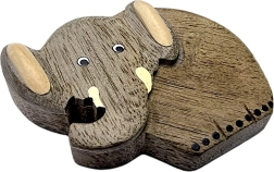 Ten stylowy magnes w kształcie słonia wykonano ręcznie z kombinacji różnych egzotycznych gatunków drewna, których naturalne odcienie tworzą niepowtarzalny mozaikowy wygląd. Drewno nie jest barwione – jedynie delikatnie domalowane dla podkreślenia detali, dzięki czemu możesz cieszyć się jego autentyczną naturalną fakturą i kolorem.