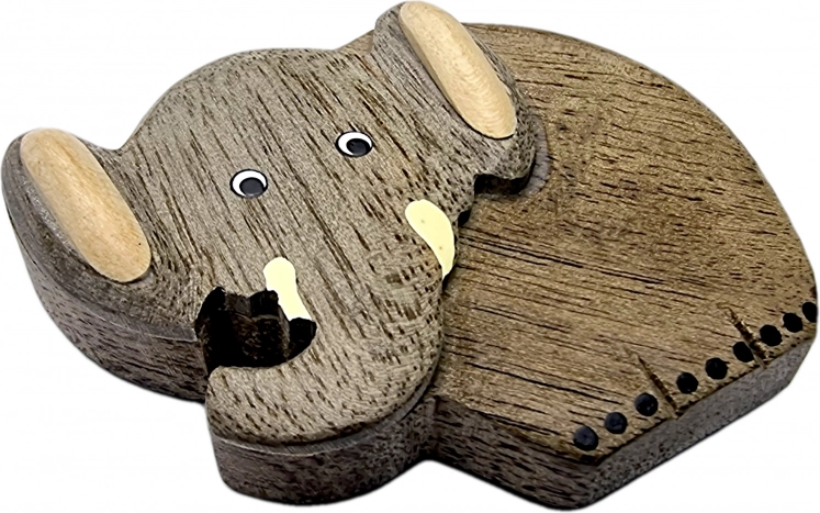 Uroczy drewniany magnes w kształcie słonia rozświetli każdą lodówkę i tablicę magnetyczną. Jest ręcznie wykonywany z nawet pięciu gatunków naturalnie kolorowego drewna, dzięki czemu każdy egzemplarz jest unikatowy. Dzięki wysokiej jakości wykonania i naturalnemu wyglądowi to zarówno element dekoracyjny, jak i miły prezent dla miłośników zwierząt.