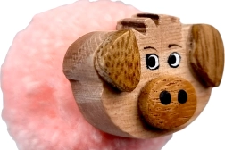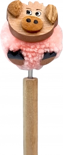 Miękki różowy pompon z drewnianą główką prosiaczka nadaje długopisowi wyjątkowy wygląd i ucieszy małych i dużych miłośników zwierząt.