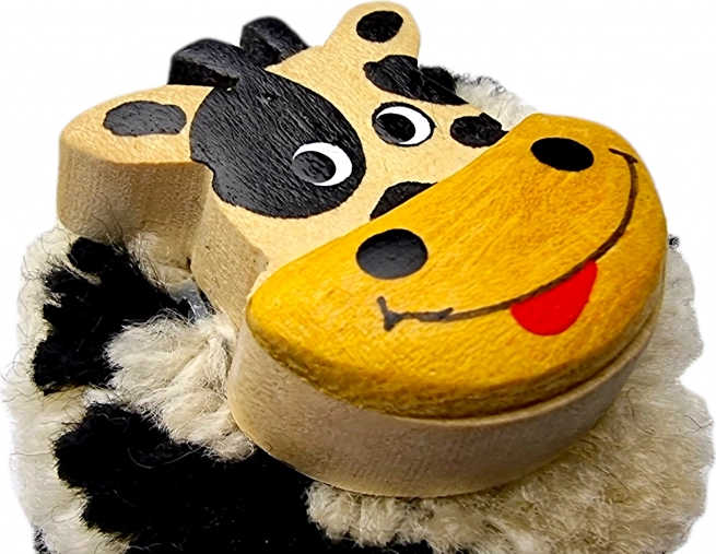 Uroczy drewniany magnes w kształcie krówki z puszystym pomponem rozjaśni każdą lodówkę i tablicę magnetyczną. Ręcznie wykonany z nawet pięciu rodzajów naturalnego drewna, bez chemicznego barwienia, to stylowa i trwała dekoracja oraz miły upominek. Naturalne materiały, ręczne wykonanie i oryginalny design czynią z niego wyjątkowy dodatek do domu.