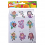 Diamentowe malowanie to popularna aktywność DIY, która w zabawny sposób uczy dzieci koncentracji i precyzji. Pracuje się według dołączonego szablonu z legendą (litery/cyfry), na który zgodnie z oznaczeniami nakleja się kolorowe kryształki za pomocą aplikatora i wosku. Efektem są lśniące naklejki z motywami wróżek, które świetnie ozdobią przybory szkolne i pokój dziecięcy.