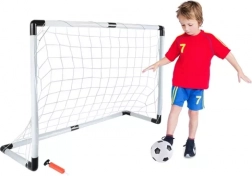 Ta dziecięca bramka piłkarska dostarcza zabawy i treningu umiejętności na każdym podwórku. Dzięki lekkiej konstrukcji z PVC i wytrzymałej nylonowej siatce poradzi sobie także z silniejszymi strzałami. Zestaw zawiera wszystko, czego potrzebujesz: bramkę, siatkę, piłkę, ręczną pompkę i śledzie mocujące, więc możesz zacząć grać w okamgnieniu.