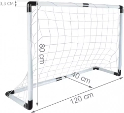 Lekka i stabilna dziecięca bramka piłkarska o wymiarach 120 × 80 × 40 cm z siatką, piłką, pompką i śledziami do ziemi. Idealna do ogrodu i na boisko – wspiera ruch, koordynację i radość z gry. Zestaw wyróżnia się łatwym montażem, niską wagą oraz trwałą nylonową siatką dla bezpiecznych strzałów. Śledzie do kotwienia zapewniają stabilność na trawie, piasku i ziemi, a kompletne wyposażenie pozwala zacząć grać od razu.