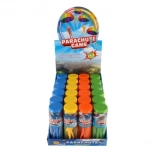 Przezroczysta cylindryczna tuba chroni zabawkę i ułatwia przenoszenie. Zabierz spadochroniarza wszędzie – na plac zabaw, do babci czy na wakacje.