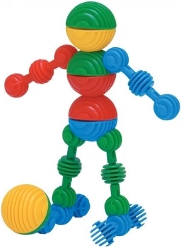 Interaktywne elementy w kształcie kolorowych postaci pozwalają dzieciom tworzyć rozmaite figurki i kształty.