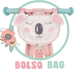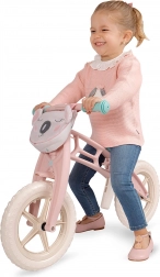 Stylowy dziewczęcy rowerek biegowy w różowo-białym wzornictwie z delikatnym kwiatowym nadrukiem i śpiącą koalą zachwyca od pierwszego wejrzenia. Dzieci łatwo uczą się na nim utrzymywać stabilność i bezpiecznie przechodzą na klasyczny rower. Niska waga 2 kg ułatwia manewrowanie i przenoszenie.