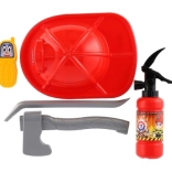 - Hełm strażacki, gaśnica na wodę, siekiera, łom, krótkofalówka (plastikowe akcesoria)