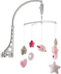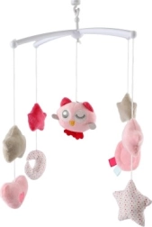 Uspokój maluszka delikatnym ruchem i melodią, które oferuje ta różowa karuzela nad łóżeczko z sową. Dzięki nakręcanemu mechanizmowi grającemu oraz mięciutkim wiszącym kształtom (gwiazdki, serduszka, księżyc) pomaga zająć i uśpić dziecko. Łatwy montaż do łóżeczka i delikatne pastelowe kolory idealnie pasują do każdego pokoju dziecięcego.