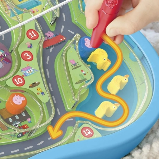 Odkryj sprytnie zaprojektowaną zabawkę, która łączy zabawę z nauką. Magnetyczny labirynt z motywem Peppy Pig oferuje kolorową mapę z ponumerowanymi punktami i przeszkodami, które dzieci pokonują za pomocą dołączonego magnetycznego rysika. Po drodze ćwiczą logiczne myślenie, cierpliwość i motorykę małą, prowadząc kuleczki bezpiecznie wyznaczonymi trasami.