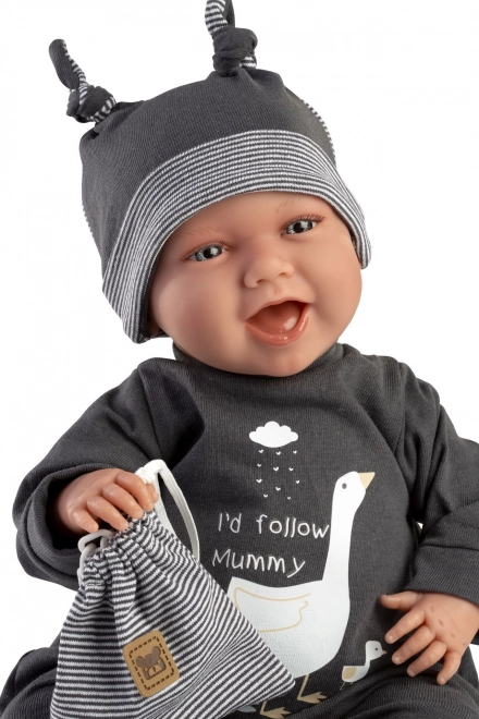 Lalka ma autentyczny wygląd z realistycznymi dźwiękami imitującymi głosy mamy i taty, co wspiera rozwój emocjonalny i kreatywną zabawę u dzieci.