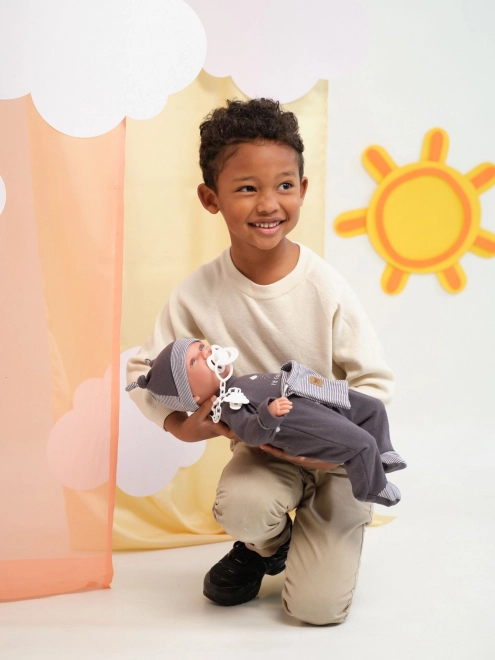 Ta urocza lalka Noworodek jest idealna dla dzieci, które chcą doświadczyć prawdziwego uczucia opieki nad niemowlęciem. Lalka ma miękkie materiałowe ciało, co daje poczucie prawdziwej bliskości. Ręce i nogi są przymocowane do ciała na stawach, co umożliwia łatwe ustawianie i siedzenie. W skład opakowania wchodzi smoczek, który służy jako dodatek do każdej zabawy.