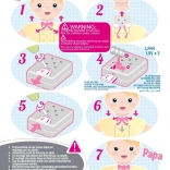 Po naciśnięciu na klatkę piersiową bobas zaczyna się śmiać i mówić 'mama', 'tata'. Łatwy do obsługi i oferuje dzieciom realistyczne doświadczenie zabawy.