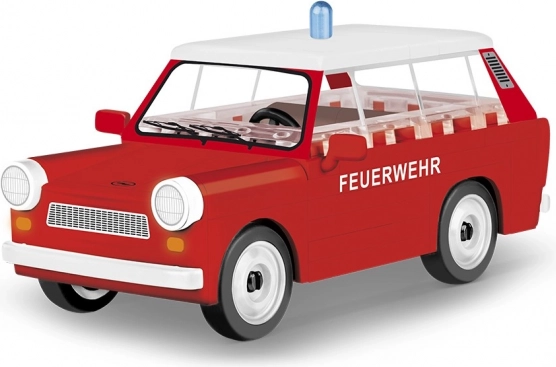 Trabant 601 Universal należy do najsłynniejszych samochodów z dawnej NRD i zasłynął m.in. nietypową karoserią z duroplastu, przestronnym wnętrzem oraz niepowtarzalnym wyglądem. Ten zestaw COBI wiernie odwzorowuje wersję strażacką z czerwonym kolorem i niebieskim światłem ostrzegawczym w praktycznej skali 1:35.