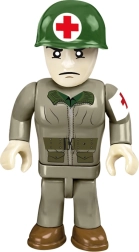W zestawie znajduje się szczegółowa figurka medyka US Army z zielonym hełmem i czerwonym krzyżem – gotowa, by działać na polu walki i ratować rannych.