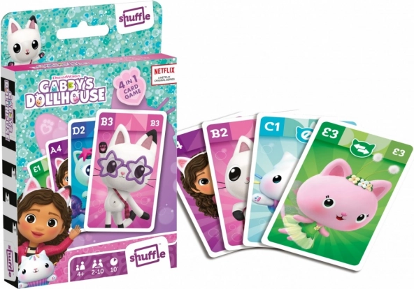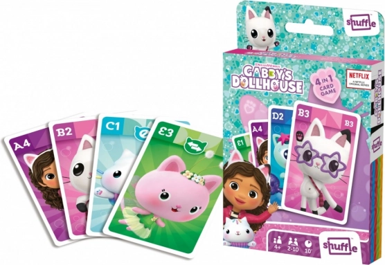 Ciesz się rodzinną zabawą z grą karcianą Shuffle Koci Domek Gabi 4w1, która łączy cztery klasyczne gry w jednym zestawie: kwartet, gra akcji, Czarny Piotruś oraz Snap. Gra jest łatwa do zrozumienia nawet dla najmłodszych, rozgrywki są szybkie – około 10 minut, a dzięki kompaktowemu opakowaniu świetnie sprawdzi się w podróży.