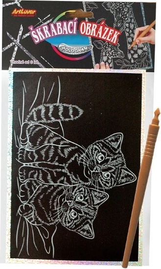 - Obrazek z holograficzną dolną warstwą, plastikowy rysik do drapania