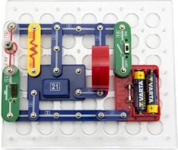Stopniowo wypróbujesz różne typy połączeń, od prostych obwodów po bardziej złożone kombinacje z efektami świetlnymi, dźwiękami i silnikiem. Zestaw rozwija logiczne myślenie, cierpliwość i małą motorykę – idealny wybór do nauki w domu i na wolny czas.