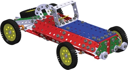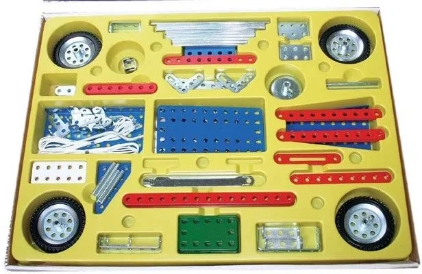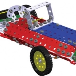 Oprócz klasycznych modeli, takich jak traktor, duży dźwig lub samochód ciężarowy, możesz przy pomocy zestawu zbudować przekładnie i duże maszyny. Wymiary pudełka to 54 x 36 x 6 cm i jest odpowiednia dla dzieci od 6 lat.