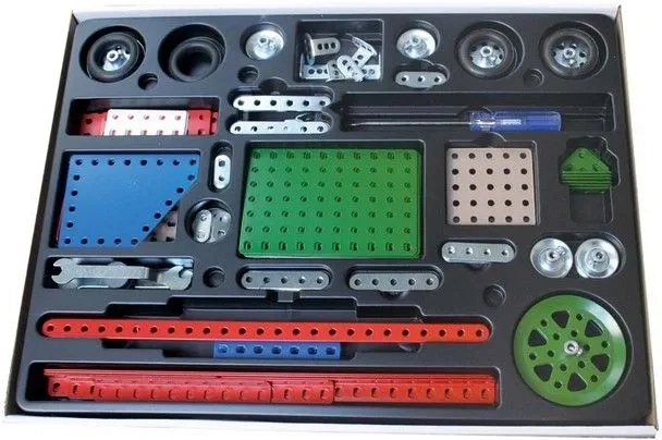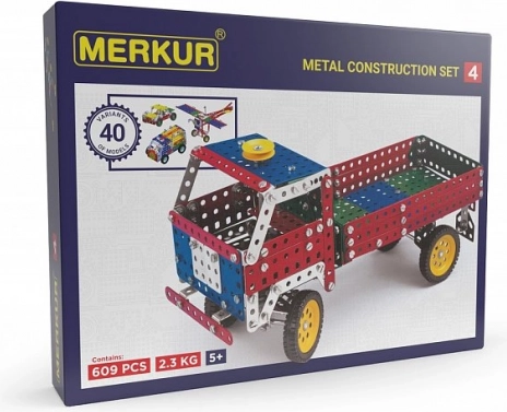 Klasyczny zestaw klocków Merkur z możliwością złożenia 40 różnych modeli do kreatywnej zabawy. Idealne dla małych konstruktorów od 6 lat.