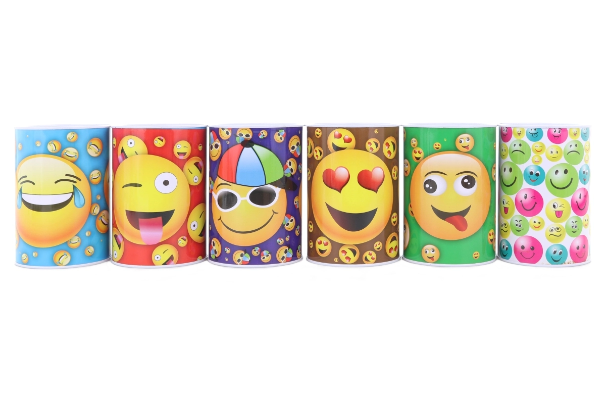 Urocza metalowa skarbonka we wzór emotikonów jest idealna na pierwsze oszczędności dzieci. Ma kompaktowe wymiary 12 × 8,5 cm, jest lekka i wytrzymała. Bezpieczna konstrukcja bez możliwości otwarcia motywuje do oszczędzania i chroni drobne monety. Odpowiednia od 3 lat.