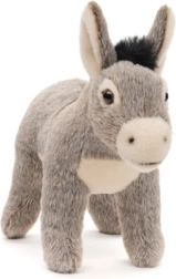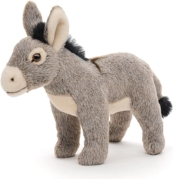 Ten uroczy pluszowy osiołek zachwyci każde dziecko swoją miękkością i realistycznymi detalami. Połączenie szarej sierści z kremowym pyszczkiem i brzuszkiem wygląda naturalnie i słodko. Dzięki kompaktowej wysokości 22 cm doskonale sprawdzi się w podróży, w łóżeczku oraz jako dekoracja dziecięcego pokoju.