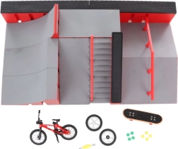 Wejdź do świata zminiaturyzowanego skateparku, gdzie możesz wykonywać różne triki z realistycznymi akcesoriami, takimi jak miniaturowa deskorolka i rower BMX. Zestaw oferuje: