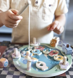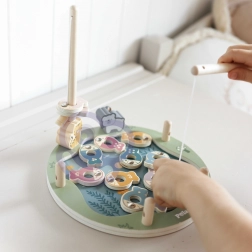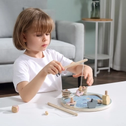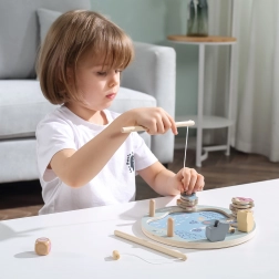 Zabawna drewniana magnetyczna gra w łowienie rybek POLARB od VIGA oferuje dzieciom od 18 miesięcy kolorowe łowienie rybek z numerami i kropkami. Zestaw zawiera okrągłą podkładkę, 2 wędki, kostkę i 12 rybek. Gra wspiera koordynację ręka–oko, motorykę małą, naukę liczb oraz interakcje społeczne podczas rywalizacji i współpracy.