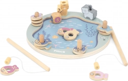 - Zawartość opakowania: drewniana podkładka, 2 magnetyczne wędki, kostka, 12 rybek z liczbami/kropkami