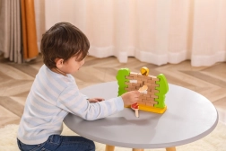 Wytrzymałe drewniane elementy z gładkimi krawędziami oraz stabilna podstawa zapewniają bezpieczną i długotrwałą zabawę w domu i w przedszkolu.
