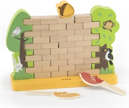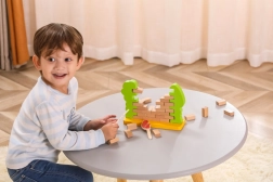 Dzieci ćwiczą precyzję ruchów i koordynację podczas budowania oraz ostrożnego wyjmowania drewnianych „cegiełek”. Gra w naturalny sposób wspiera koncentrację i spokojną pracę rąk.