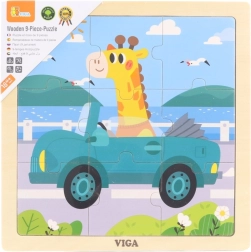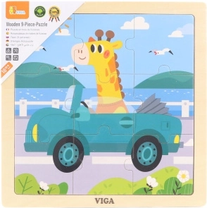 Te wysokiej jakości drewniane puzzle z uroczą żyrafą w samochodzie zostały zaprojektowane z myślą o małych dziecięcych rączkach. Dzięki 9 dużym i łatwym do chwytania elementom dzieci trenują koordynację oko–ręka i uczą się układać prosty obrazek w solidnej drewnianej ramce.