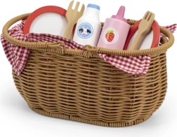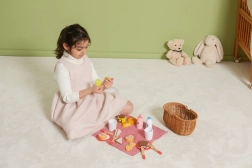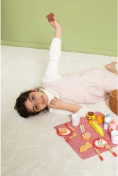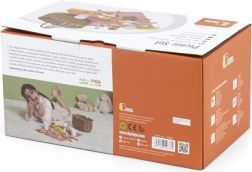 Wyrusz na wesoły piknik z dziećmi dzięki drewnianemu zestawowi piknikowemu marki VIGA. Stylowy wiklinowy koszyk z kraciastą tkaniną skrywa 30 elementów, w tym napoje, jedzenie i naczynia. Niektóre produkty są na rzep, a dzieci mogą je kroić drewnianym nożem – świetny sposób na rozwijanie małej motoryki i zabawę w odgrywanie ról w domu i na zewnątrz.