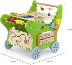 Odkryj wielofunkcyjny drewniany chodzik w kształcie krokodyla marki VIGA, oferujący aż 12 aktywności do zabawy i nauki. Wspiera pierwsze kroki, rozwija motorykę małą i dużą, koordynację ręka–oko oraz myślenie logiczne. Znajdziesz na nim ksylofon, liczydło, sorter kształtów, kółka zębate, labirynt i inne elementy, które motywują dzieci do ruchu i odkrywania.