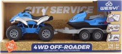 Ta szczegółowo wykonana czterokołowiec z przyczepą i skuterem dostarcza dzieciom mnóstwo akcji i fantazji. Dzięki efektom świetlnym i dźwiękowym zabawa jest jeszcze bardziej realistyczna i wciągająca. W zestawie znajduje się przyczepa do przewozu skutera, więc dzieci mogą tworzyć własne historie i przygody.