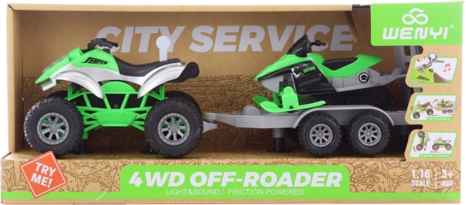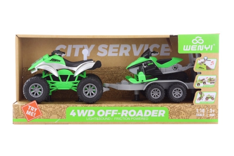 - Kompletny zestaw – czterokołowka, przyczepa i skuter.