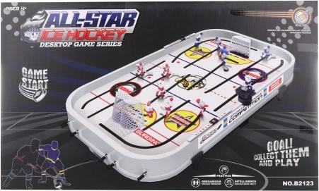 Ciesz się emocjonującymi meczami w domu z hokejem stołowym dla dzieci od 4 lat. Ta duża plastikowa gra stołowa oferuje zabawę dla całej rodziny, proste sterowanie zawodnikami i szybką, dynamiczną rozgrywkę.