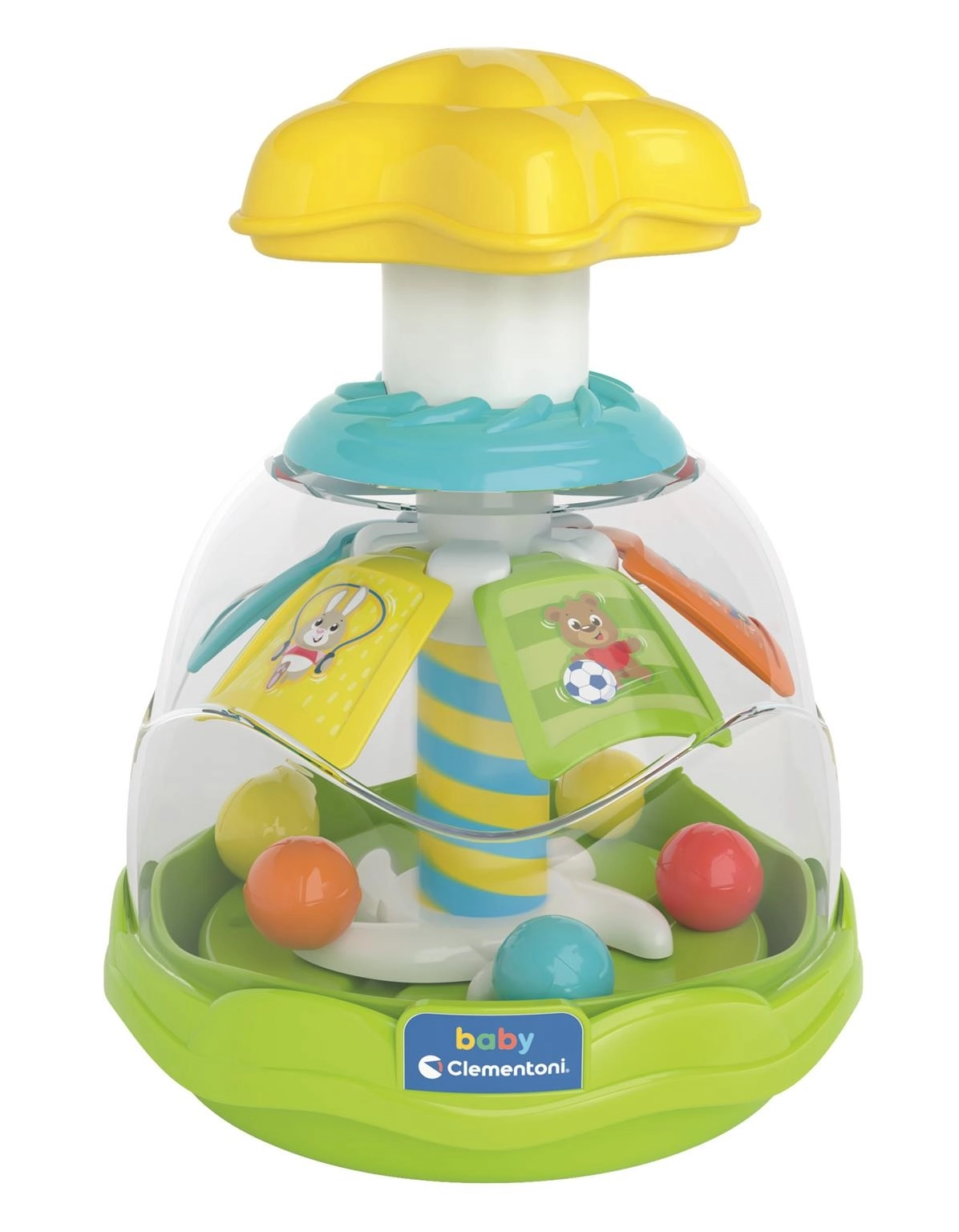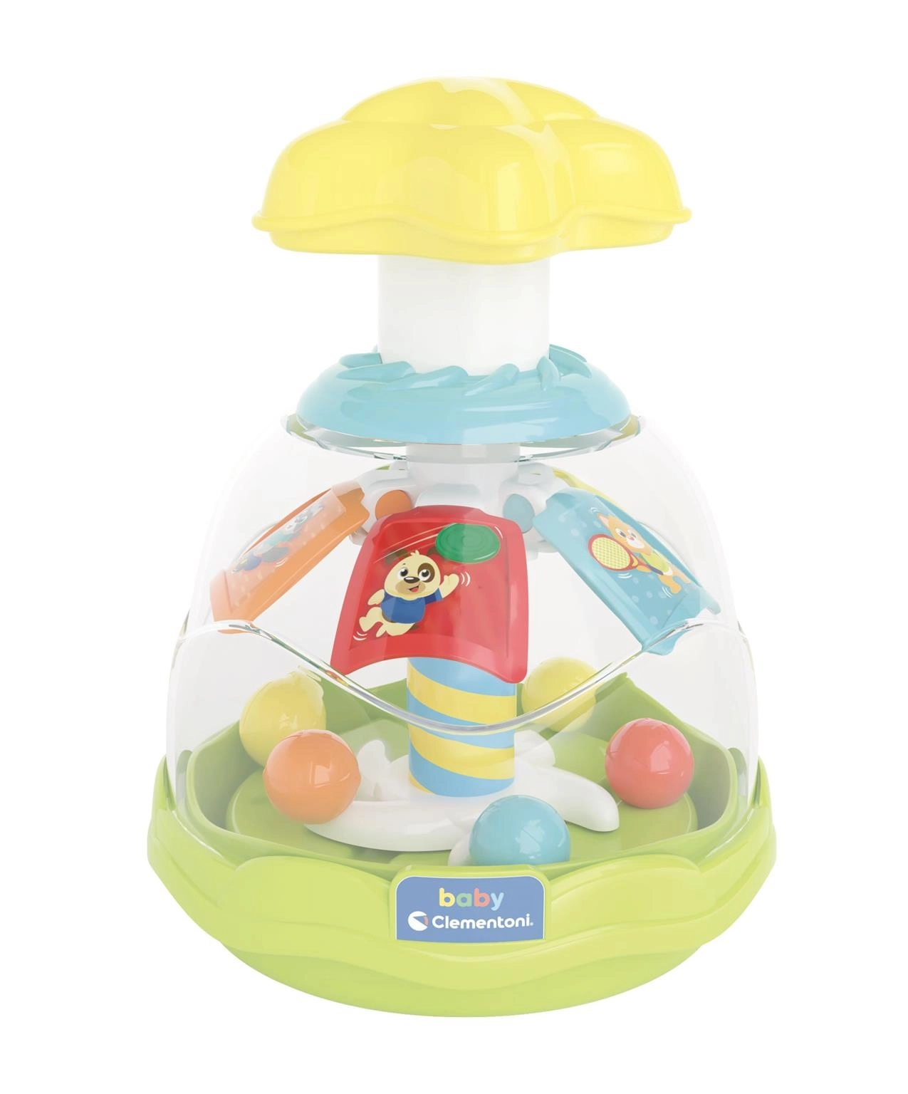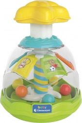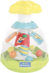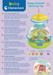 Wesoły i kolorowy bączek ze zwierzątkami jest wypełniony małymi kuleczkami, które podczas kręcenia tańczą i podskakują. Podczas obracania dodatkowo otwierają się wewnętrzne łopatki. Zabawka wspiera małą motorykę, koordynację oko–ręka oraz myślenie przyczyna–skutek.