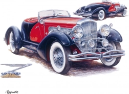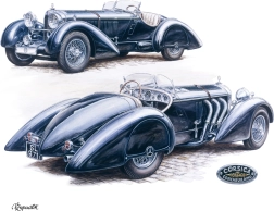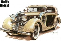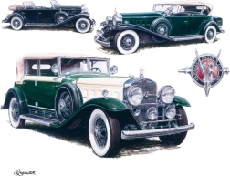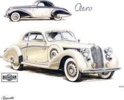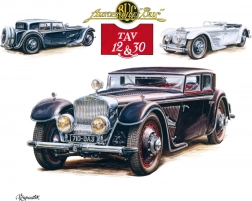 Dwanaście precyzyjnych ilustracji klasycznych samochodów autorstwa VÁCLAVA ZAPADLÍKA doda wnętrzu stylu i wartości kolekcjonerskiej.