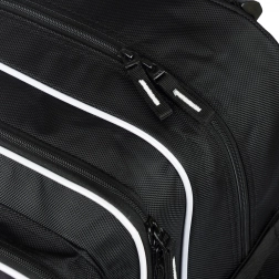 Praktyczne miejsca do przechowywania: Trzy oddzielne zamykane komory, w tym kieszeń na 15-calowego laptopa lub tablet, oraz przedni organizer z karabińczykiem na klucze.