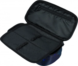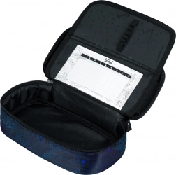 Piórnik jest wyposażony w składankową wewnętrzną przegrodę i kieszeń na plan lekcji, co umożliwia efektywną organizację artykułów szkolnych.