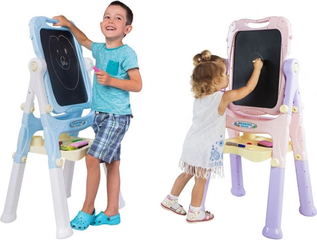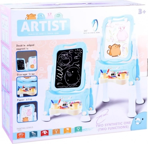 Dziecięca dwustronna magnetyczna i kredowa sztaluga-tablica – Niebieska