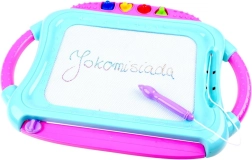 Praktyczny przesuwny suwak natychmiast wymazuje cały obrazek, więc zabawa jest niekończąca się. Dzięki solidnej konstrukcji i wygodnym uchwytom tablica idealnie sprawdzi się w domu i w podróży. Eleganckie opakowanie czyni z niej świetny prezent dla małych artystów.
