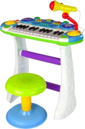 Dwie oktawy, 16 melodii, 8 rytmów i 4 zestawy perkusyjne. Dziecko łatwo pozna podstawy gry i akompaniamentu oraz rozwinie wyczucie rytmu.