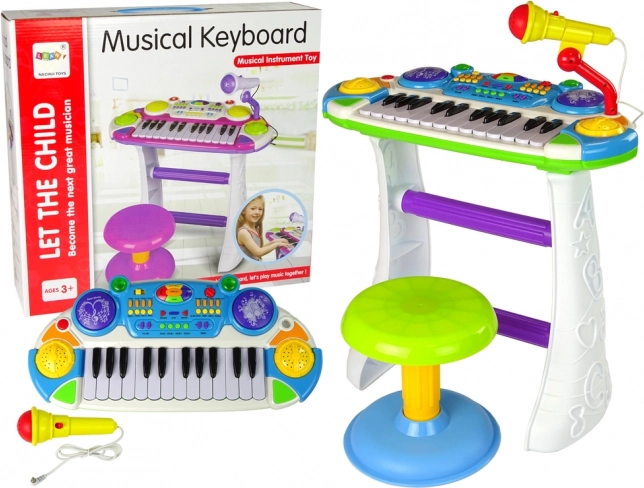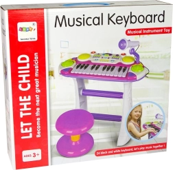 Ten wielofunkcyjny dziecięcy keyboard to idealny wybór dla małych muzyków od 3 lat. Dzięki bogatemu wyposażeniu i łatwej obsłudze dostarcza mnóstwo radości, a jednocześnie wspiera rozwój słuchu muzycznego i rytmu. Można go używać na dołączonym stojaku ze stołkiem lub samodzielnie położyć na stole.