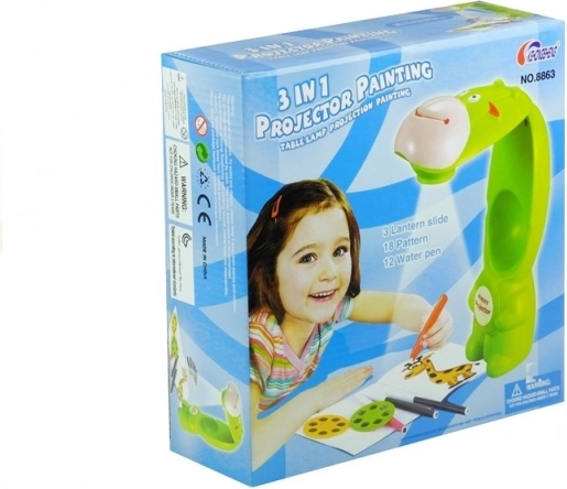 Projektor żyrafa, 12 wodnych flamastrów, 3 dyski (18 motywów), zeszyt do malowania