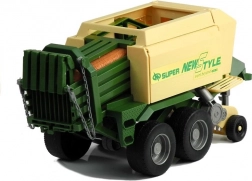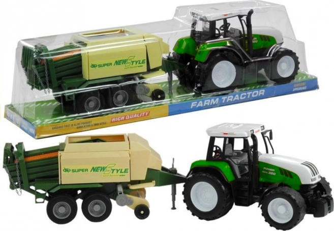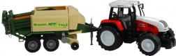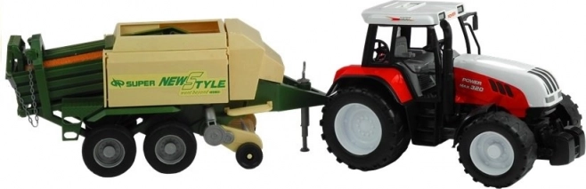 Przyczepa zawiera ruchome części takie jak wysuwane podparcie, obrotowy mechanizm podawania i otwierane boczne i tylne klapy. Ten ekscytujący traktor jest dostępny w czerwonym i zielonym kolorze, co dodaje autentyczności i zabawie.