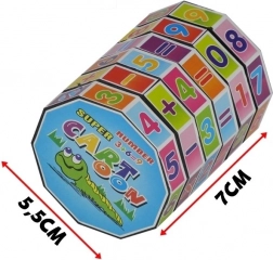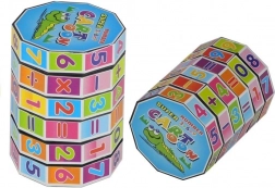 Kolorowa walcowa łamigłówka z obrotowymi pierścieniami pomaga dzieciom w zabawny sposób opanować podstawy matematyki. Dzięki liczbom i znakom dzieci poćwiczą dodawanie, odejmowanie, mnożenie i dzielenie, i to kiedykolwiek i gdziekolwiek. Wytrzymała konstrukcja z bezpiecznych materiałów spełnia normę EN 71, jest odpowiednia od 3 lat, a kompaktowe wymiary 7 × 5,5 cm czynią z niej idealną pomoc w podróży.