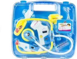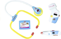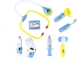 Ten wieloelementowy zestaw zawiera wszystkie narzędzia niezbędne do pracy lekarza. Zabawka utrzymana jest w neutralnej kolorystyce, składającej się z niebieskiego, białego i żółtego koloru, dlatego jest świetną propozycją dla rodzeństwa - dziewczynek i chłopców.