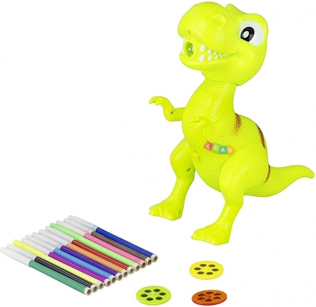 - Projektor w kształcie dinozaura, 12 markerów, 3 dyski ze wzorami (18 obrazków), zeszyt do rysowania